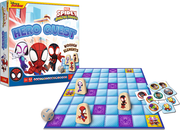 Spidey a jeho úžasní přátelé: Hero Quest je zábavná hra pro celou rodinu. Přidejte se ke Spideymu při hledání kamarádů a padouchů. Počet hráčů: 2-3 Věk: 3+ Obsah balení: hrací deska dřevěná kostka 18 kartiček s hrdiny a padouchy návod