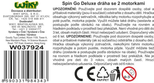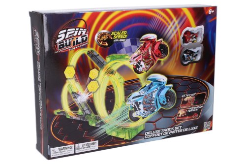 Spin and Build Deluxe dráha s 2 motorkami. Bez vystřelovacího zařízení. Dojezd motorky 50 m, na setrvačník s gyroskopem. Velikost motorky 4,5 cm. Další motorky lze zakoupit samostatně (W037920, W037921).