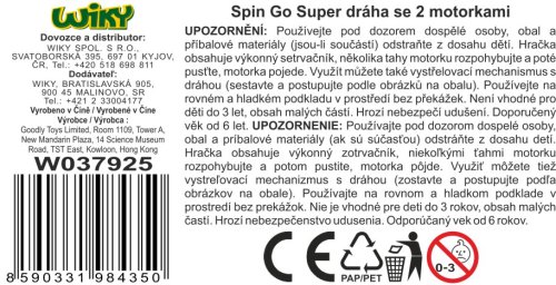 Spin and Build Super dráha s 2 motorkami. S vystřelovacím zařízením. Dojezd motorky 50 m, na setrvačník s gyroskopem. Velikost motorky 4,5 cm. Další motorky lze zakoupit samostatně (W037920, W037921).