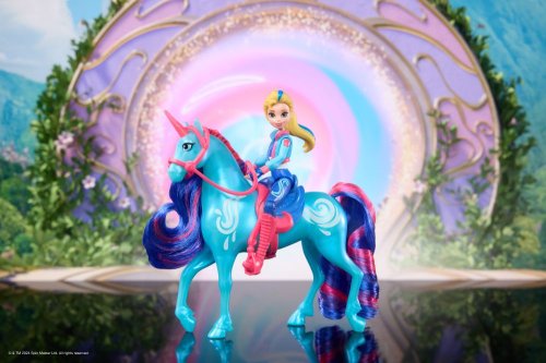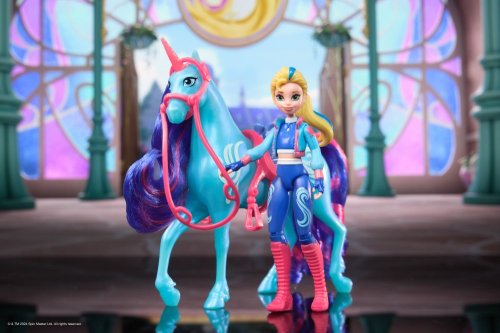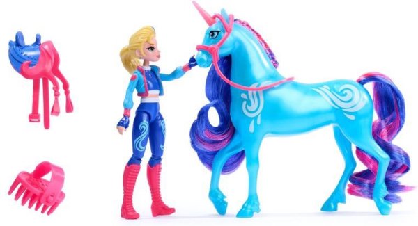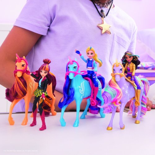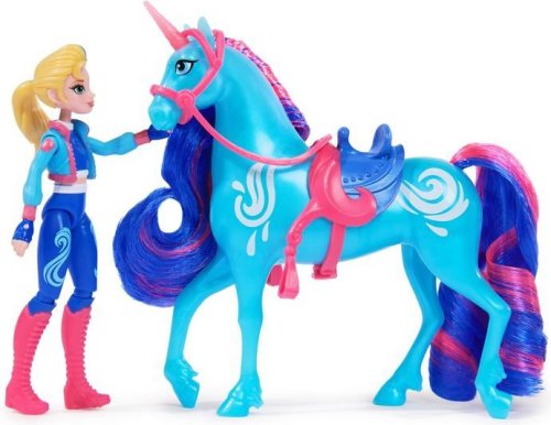 sada inspirovaná animovaným seriálem od NETFLIXu a bestsellerovou knižní sérií panenka má detailně propracované rysy a pohyblivé klouby hřívu a ocas jednorožce lze rozčesávat přiloženým kartáčem uzda a sedlo jsou odnímatelné výška panenky: cca 11,5 cm; výška jednorožce: cca 13 cm