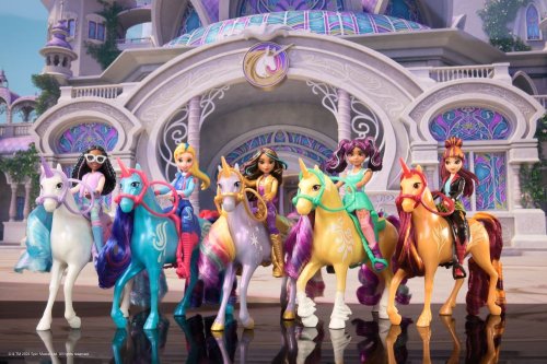 sada inspirovaná animovaným seriálem od NETFLIXu a bestsellerovou knižní sérií panenka má detailně propracované rysy a pohyblivé klouby hřívu a ocas jednorožce lze rozčesávat přiloženým kartáčem uzda a sedlo jsou odnímatelné výška panenky: cca 11,5 cm; výška jednorožce: cca 13 cm