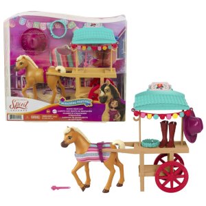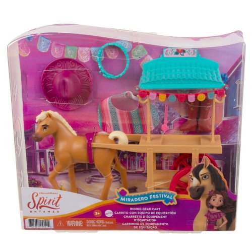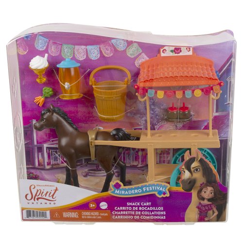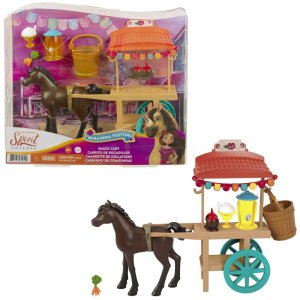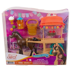 Buďte součástí všeho toho přátelství, statečnosti a dobrodružství s animovaným filmem Spirit od DreamWorks! Sortiment stánků Spirit Festival Stand nabízí výběr mezi festivalovým stánkem na zmrzlinu, který je dodáván s otočnými kolečky, plachtou a příslušenstvím pro výrobu kornoutů se zmrzlinou a s malým poníkem; nebo stánkem na čištění obuvi, který je dodáván s otočnými kolečky, plachtou a doplňky pro naleštěné boty a s malým poníkem.