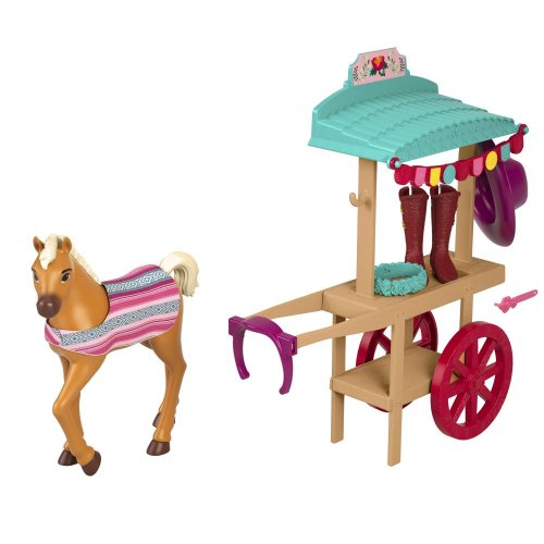 Buďte součástí všeho toho přátelství, statečnosti a dobrodružství s animovaným filmem Spirit od DreamWorks! Sortiment stánků Spirit Festival Stand nabízí výběr mezi festivalovým stánkem na zmrzlinu, který je dodáván s otočnými kolečky, plachtou a příslušenstvím pro výrobu kornoutů se zmrzlinou a s malým poníkem; nebo stánkem na čištění obuvi, který je dodáván s otočnými kolečky, plachtou a doplňky pro naleštěné boty a s malým poníkem. Každý se prodává samostatně, v závislosti na dostupnosti. Barvy a dekorace se mohou lišit.