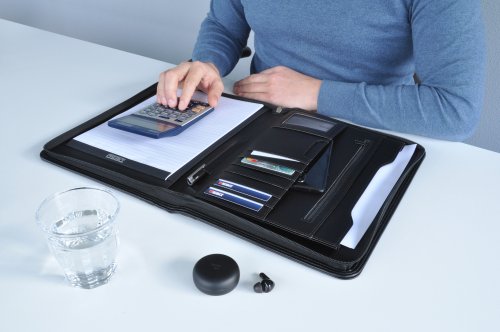 - Spisovka A4 z umělé kůže se zipem - Uzavíratelná na zip - 1 vnitřní zásuvná kapsa na dokumenty formátu A4 nebo tablet do velikosti 10" - 3 kapsy na dokumenty A5 - 8 kapes na karty nebo vizitky - 1 …