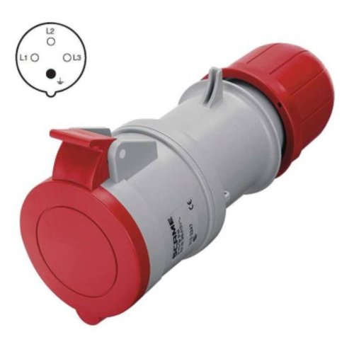 3 fázová spojka 400 V napětí/proud: 380–415 V~/32 A krytí: IP44 typ: šroubové svorky počet pólů: 4 dětské clonky: ne