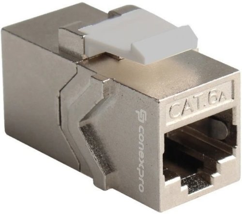 Spojka Conexpro STP 8/8 RJ45 / Cat.6A ve stříbrném provedení je praktické řešení pro spojení dvou síťových kabelů. Podporuje kabely kategorie CAT6A a nižší a zajišťuje spolehlivý přenos díky stíněnému provedení.