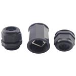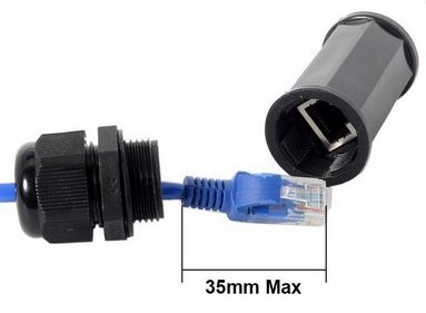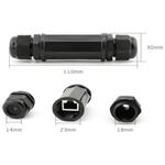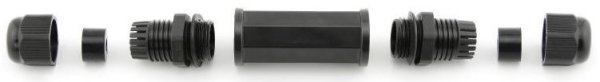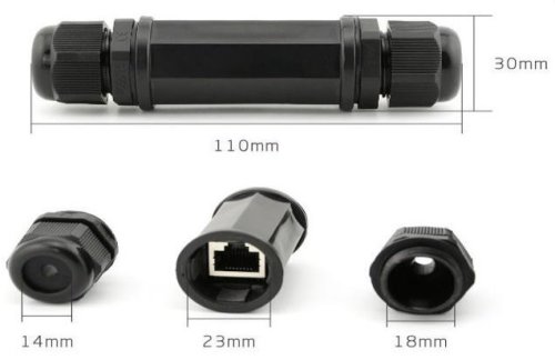 Venkovní STP spojka s dvěma průchodkami pro spojení dvou UTP/FTP/STP kabelů kategorie Cat.5e/6/7 o průměru 4 až 7 mm. Spojka splňuje krytí IP67.