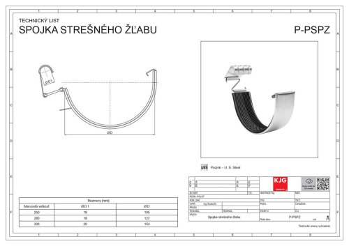 Spojka žlabu obsahuje nasouvací těsnění, které usnadňuje práci a zajišťuje vodotěsný spoj mezi jednotlivými žlaby.
