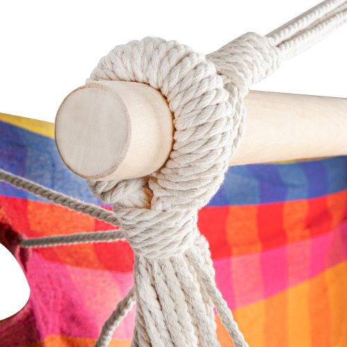 Brazilská houpací síť – sedátko Spokey BENCH DELUXE, to je víc než jen obyčejná zahradní houpací síť. Je do sedátko pro dvě osoby vyrobené z přírodních materiálů – prodyšné bavlny, která je velmi měkká a příjemná na dotek. To ale nejsou všechny výhody Spokey BENCH DELUXE! Dokonale se vám přizpůsobí a je velmi stabilní. Jeho barvy dodají okolnímu prostředí charakter. S takovou houpací síti – sedátkem poskočí vaše chvilky odpočinku na ještě vyšší úroveň!