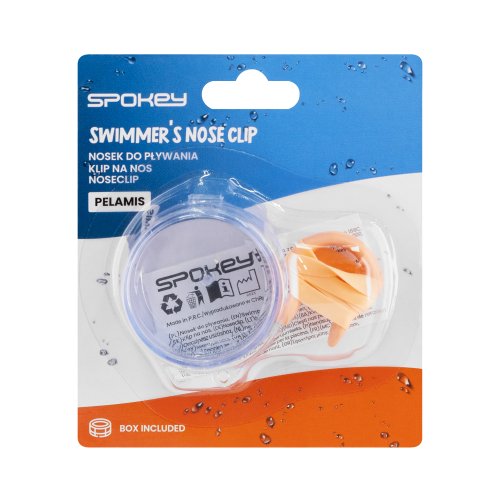 Kolíček na nos vyroben z oceli potažené měkkým silikonem. - ucpávka nosu PELAMIS s páskem zabraňuje vniknutí vody do nosu; - materiál: ohebný drát zapuštěný v měkkém silikonu; - elastický pásek...