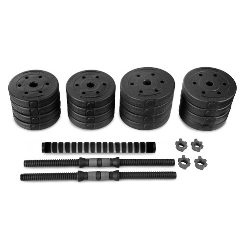 Nakládací sada činek PONDUS 30 umožňuje snadné nastavení hmotnosti podle potřeb a možností cvičence. Ze dvou krátkých hřídelí a kotoučů si snadno sestavíte jednoruční činky, každou s maximální hmotností 15 kg. Díky spojovacímu dílu pak jednoruční činky lehce přeměníte na jednu nakládací obouruční činku o hmotnosti až 30 kg. Toto řešení přináší možnost pestřejšího procvičení celého těla. Spojovací díl je potažený silnou protiskluzovou pěnou pro maximální pohodlí při tréninku a pevný úchop. Cementové kotouče jsou pokryty tvrdým plastem, který chrání vaši podlahu.