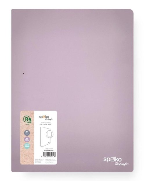 Pevné desky s kroužkovou mechanikou hodné pro rychlou archivaci, do kanceláře nebo pro domácí office. Šíře desek umožňuje vkládat i obaly s děrováním aniž by přesahovaly ven. Kvalitní a odolné zpracování chrání obsah uvnitř před nečistotami nebo poškozením•formát: A4•materiál: 100% recyklovaný PP, 700 µm•rozměry: 25 × 32 cm•barva: fialová•úprava SoftTouch•certifikace Global Recycled Standard