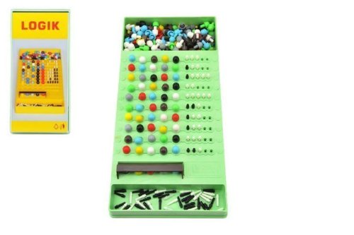 Hráč nastaví pod stříškou kombinaci z pěti barevných kolíků a druhý hráč se ji snaží během deseti pokusů odhalit, po každém kole má indicie kolik kolíků je umístěno správně. Rozměr krabice: 14 x 29 x 3 cm Vodné od 3 let