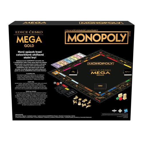 Luxusní verze klasické hry Monopoly s mapou a lokalitami z celé České republiky v exkluzivním zlatém provedení. Rozšířený herní plán, více nemovitostí, speciální zlaté figurky a nové možnosti, jak zvýšit své zisky. Ideální pro hráče, kteří chtějí zažít oblíbenou hru v jedinečném a sběratelském stylu. Součástí jsou česká pravidla.