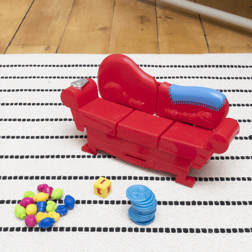 Zatoč šipkou na spinneru, abys zjistil, kolika pamlsky máš krmit gauč. Dej pamlsky na gauč, stiskni tlačítko a sleduj, kolik toho gauč spořádá. Podle toho pak na tebe vystřelí žetony. Hráč s nejvíce žetony na konci hry zvítězí. Vhodné od 5 let.