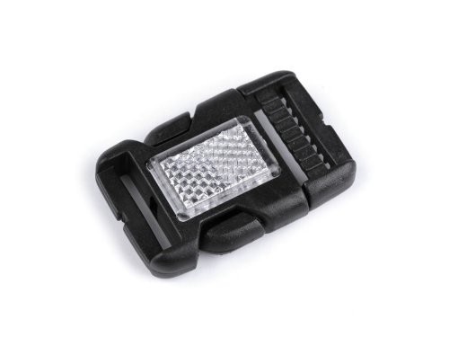 Plastová spona (trojzubec) má odrazku pro lepší viditelnost za šera, deště či tmy. Je vhodná k výrobě ledvinkových opasků, brašen, batohů apod. Využijete ji také jako zapínání pracovních lacláčů. Rozměry odrazky jsou 18 x 27 mm.