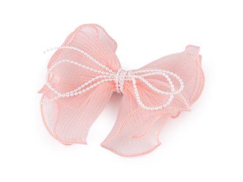Velká spona s textilní mašlí nádherně ozdobí účes na všední den i slavnostní událost. Mašle je elegantní, ozdobená perlovým řetízkem. Je ušitá z vrapované monofilové stuhy s jemným třpytem, díky všitého silonu perfektně drží tvar. Spona má kvalitní celokovové provedení, ve vlasech pevně drží díky zoubkům.