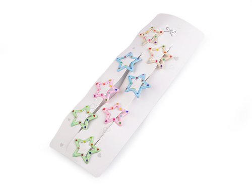 Malé sponky pukačky s hvězdou se hodí do jemných dětských vlásků. Udrží i jemný pramínek vlasů. Jsou vyrobené z kvalitního materiálu, který dlouho drží svůj tvar, funkčnost i barvy. Na každé kartě je 8 ks sponek po 4 párech. Papírová karta má výsek pro zavěšení a vystavení sponek na prodejní stojan.