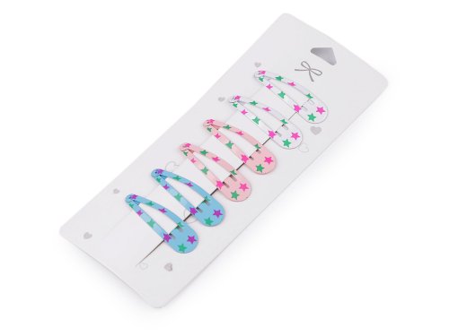Mix barevných sponek s potiskem ocení všechny malé parádnice. Jsou vyrobené z kvalitního materiálu, který dlouho drží svůj tvar, funkčnost i barvy. Na papírové kartě je 6 ks sponek po 3 párech. Karta je opatřená výsekem pro zavěšení a vystavení na prodejní stojan.