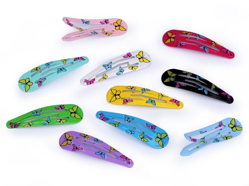 Mix barevných sponek s potiskem ocení všechny malé parádnice. Jsou vyrobené z kvalitního materiálu, který dlouho drží svůj tvar, funkčnost i barvy. Sponky jsou umístěné na papírové kartě s výsekem pro zavěšení a vystavení sponek. Na kartě je 10 sponek. Barvy jednotlivých sponek na kartě se mohou lišit.