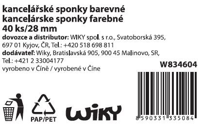 Spony jsou vyrobeny z pevného a odolného drátu obaleného barevným obalem, který drží dokumenty pevně u sebe.