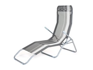 Plážové lehátko ATHIMA má ocelovou konstrukci ve stříbrné barvě s možností snadného složení.