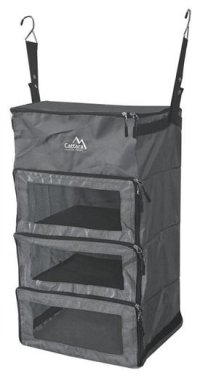 Závěsný organizér, 4 police na zip, nosnost 5 kg, 2 háčky, skladný a lehký.