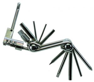 - malá kapesní sada nářadí - 11 funkcí - 2/2,5/3/4/5/6/8 ocelové imbusové klíče - 1x plochý šroubovák - 1x Philips šroubovák - 1x nářadí na řetěz - T 25 Torx - nylonvá taštiška -193g