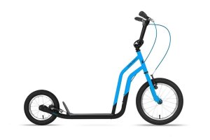 Koloběžka s nosností 100 kg, doporučená výška jezdce až 180 cm, pro děti od 10 let, rozměr kol 270 mm, kvalitní odlehčená ocel, manuální brzda u zadního blatníku, gumové rukojeti.