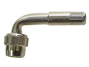 Redukce ventilu s ohnutím pro malá kola Pomáhá lépe nahustit kola s malým průměrem Úhel ohnutí:90° Určeno pro AV - moto ventily Se zpětným ventilem