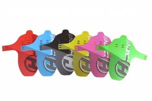 Blatníky vyrobeny z kvalitního plastu v kombinaci zářivých barev.Vhodný pro většinu odpružených vidlic (výztuha vidlice musí být vpředu) a drtivou většinu sedel.