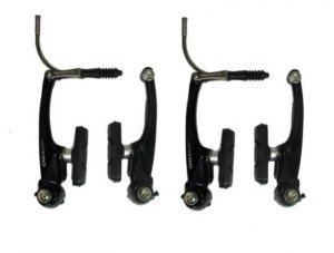 Kompletní sada přední + zadní Tvar čelistí - V-brake - bez otvoru Výška čelistí: 110 mm Pružiny: lineární Sada obsahuje gumičky, šrouby a vodítka Materiál: Al hliník Brzdové gumičky: 70mm Délka …