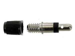 Náhradní ventilek na cyklo duše s těsnící gumičkou, "o" kroužkem a plastovou černou čepičkou Tělo ventilu: nikl