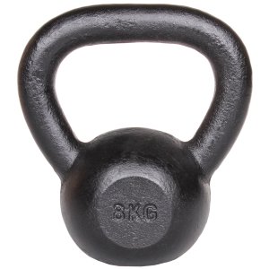 Činky kettlebell 8 kg s trojúhelníkovým madlem má vinylovou skořepinu s cementovou náplní uvnitř.