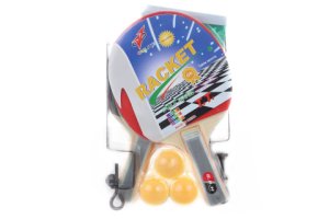 Pingpong sada se síťkou o bsahuje 2 pálky, 3 míčky a síťku.