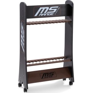 Reklamní dřevěný stojan na pruty, doplněný elegantními logy MS Range.