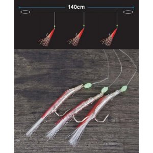 Systém pro velké makrely a tresky obecné, se třemi háčky, má slídové a pryžové, červenobílé tělo.