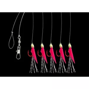 Mořský návazec s pěti háčky velikost 12 potaženými pravou rybí kůží v barvě pink.