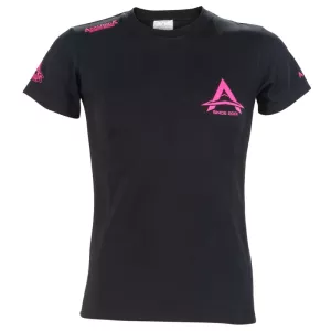 Dámské triko lehce vypasového střihu s bočními švy v černé barvě s krátkým rukávem.
