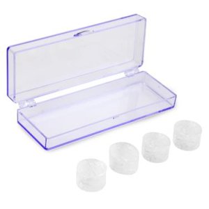 Silikonové zátky do uší AMMUS – ochraňují vnitřní část ucha proti vniknutí vody - kulatá, plastová krabička umožňuje uložení zátek ve sterilních podmínkách