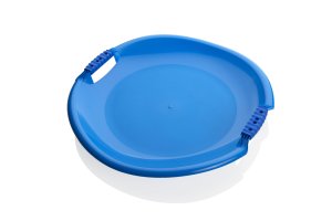 Sáňkovací talíř Meteor, s vodícími drážkami, o průměru 60 cm. Talíř je vyroben z odolného, silného plastu.