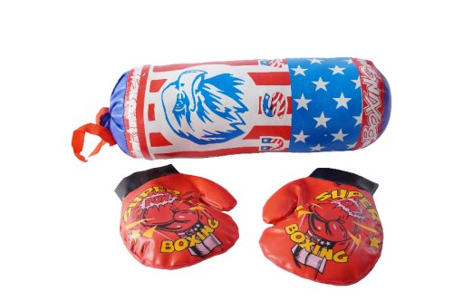 Sada boxovacího pytle s rukavicemi. Sportovní vyžití může být i v dětském pokoji. Pytel lze zavěsit a dítě může boxovat.