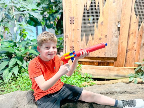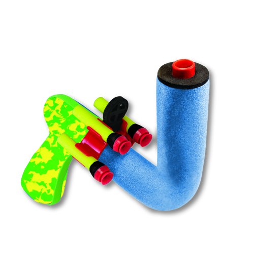 Pěnová pistole na pěnové náboje poháněná vzduchem. Hlaveň lze ohnout (střelba za roh). Dostřel až 8 metrů.