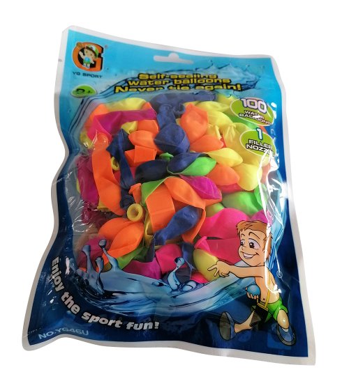 Naplň vodní bomby vodou a už je nemusíš zavazovat. V bombě je malá polystyenová kulička, která utěsní otvor a voda nevyteče.