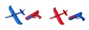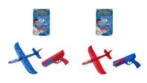 K tomu letadélku dostaneš i takovou pistoli. Do té pistole se letadélko vloží a pak ho z ní můžeš vystřelit! Stačí jen natáhnout a zmáčknout spoušť a letadélko poletí vysoko do vzduchu.