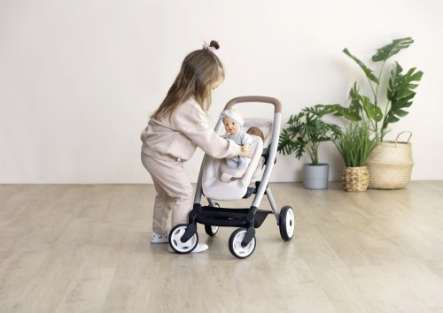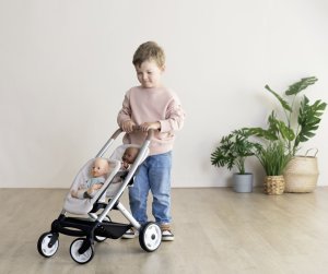 Dvojitý kočárek Smoby s odnímatelnými sedadly a tichými kolečky. Moderní sportovní kočárek pro panenky Smoby twin v nezaměnitelném designu Quinny. Dobře navržený kočárek pro panenky má skvělé vlastnosti: ergonomická rukojeť pro snadné uchopení je obzvláště pohodlná do malých dětských rukou, potahy sedadel z robustní tkaniny ze syntetických vláken se snadno čistí - stačí otřít vlhkou houbou. Přední sedadlo je vybaveno bezpečnostním pásem. Vhodné pro panenky do 42 cm. Dodání bez panenky. Rozměry produktu (DxŠxV): 54,5 x 38,5 x 64 cm.