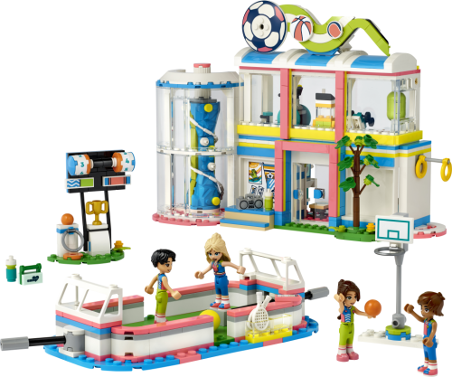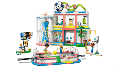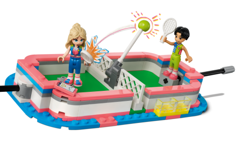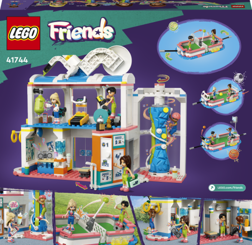Udělejte dětem se zájmem o sport od 8 let radost stavebnicí LEGO® Friends Sportovní středisko (41744) . Součástí jsou 4 minipanenky a spousta doplňků. Nechybí hřiště, které lze přizpůsobit různým sportům výměnou branek a sítí. Ve stavebnici také najdete držáky na minipanenky a několik druhů míčů, takže postavy mohou za pomoci dětí skutečně hrát. Po fotbalovém tréninku branky vyměňte za tenisovou síť a střílejte přes ni míčky. Pak síť vyměňte za basketbalový koš a naučte se skórovat. Stavebnice obsahuje také ukazatel skóre a místo na odkládání míčů. Uvnitř sportovního střediska mohou děti prozkoumat posilovnu, lezeckou stěnu a šatnu.