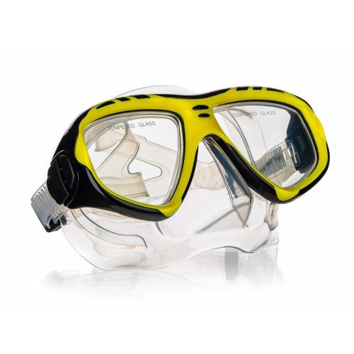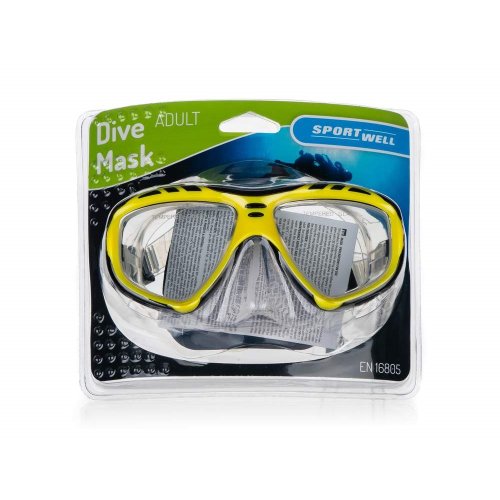 Maska potápěčská SPORTWELL je skvělou plaveckou pomůckou pro šnorchlování a zábavu ve vodě. Materiál: lícní maska a popruh ze silikonu, temperované sklo, dělený zorník. Barva rámečku je kombinace černé a žluté.