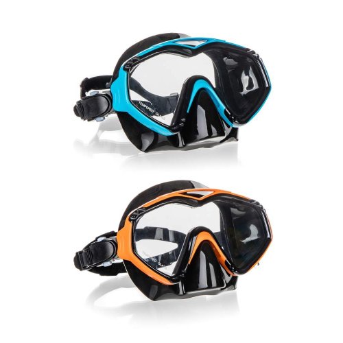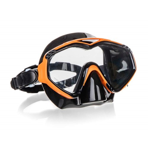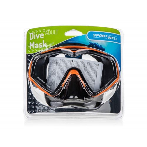 Maska potápěčská SPORTWELL je skvělou plaveckou pomůckou pro šnorchlování a zábavu ve vodě. Materiál: lícní maska a popruh ze silikonu, temperované sklo, dělený zorník. Výběr ze 2 barev: černo-oražová a černo-modrá.