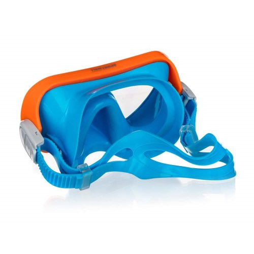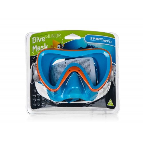 Maska potápěčská dětská SPORTWELL je skvělou pomůckou pro výuku plavání i zábavu ve vodě. Nedělený zorník masky je z polykarbonátového skla a lícní maska a popruh z PVC. Barva modrá s oranžovým rámečkem.